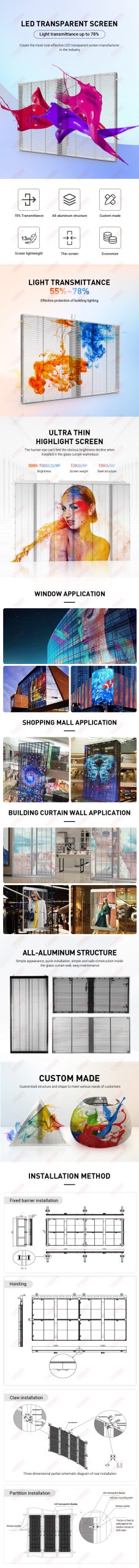 Light transmittance up to 78%.Create the most cost-effective LED transparent screen manufacturerin the industry.